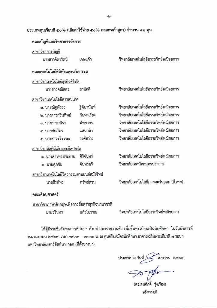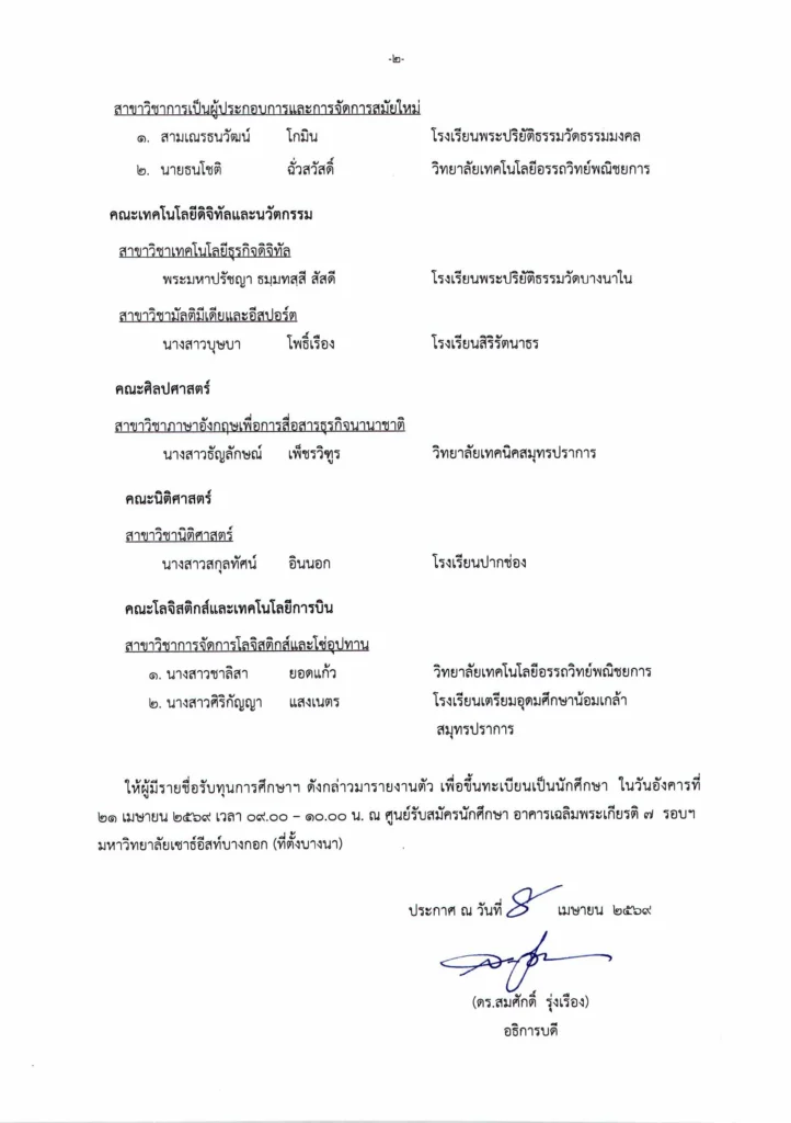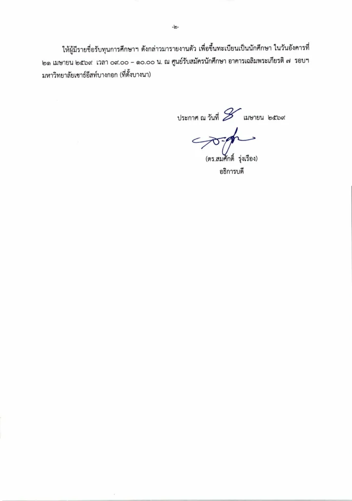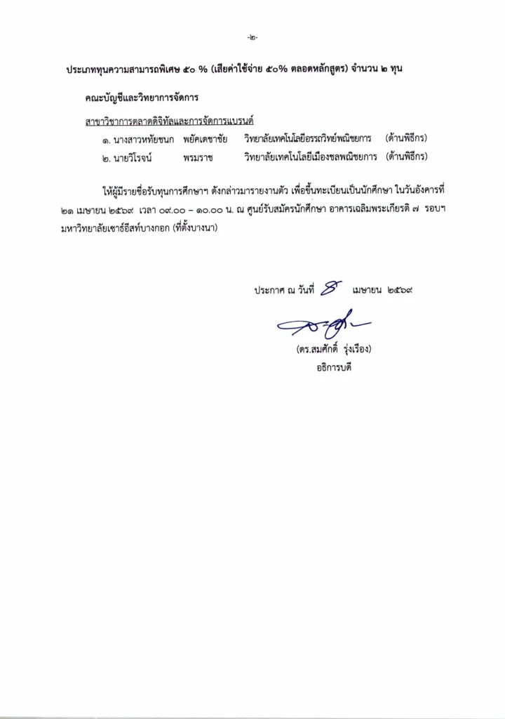 ประกาศผลการพิจารณาทุนการศึกษา โครงการทุนช้างเผือกฯ ครั้งที่ 2 ปีการศึกษา 2569