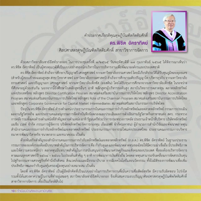 ศิลปศาสตรดุษ ีบัณฑิตกิตติมศักดิ์ สาขาวิชาการจัดการ