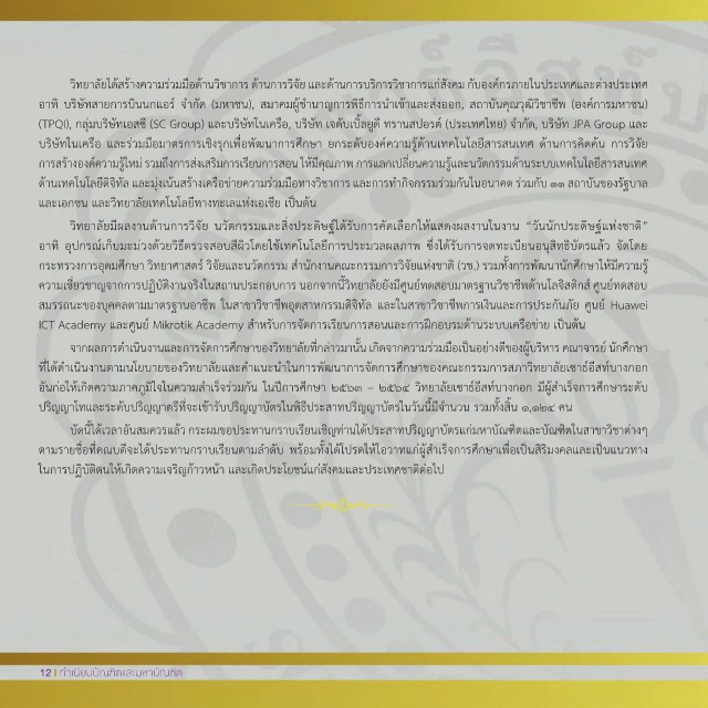 ด้านเทคโนโลยีดิจิทัล และมุ่งเน้นสร้างเครือข่ายความร่วมมือทางวิชาการ และการทำากิจกรรมร่วมกันในอนาคต ร่วมกับ ๑๑ สถาบันของรั บาล