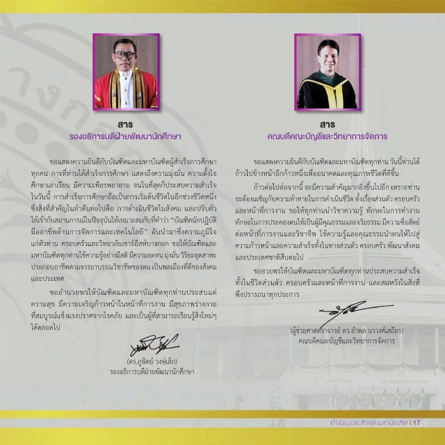 ทุกคน การที่ท่านได้สำาเร็จการศึกษา แสดงถึงความมุ่งมั่น ความตั้งใจ ก้าวไปข้างหน้าอีกก้าวหนึ่งเพื่ออนาคตและคุณภาพชีวิตที่ดีขึ้น