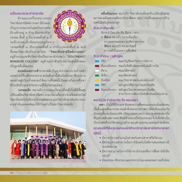 อยู่ด้านบนและชื่อวิทยาลัยเป็นภาษาอังกฤษว่า “SOUTHEAST สี ระจ าค ะ หลักส ตร