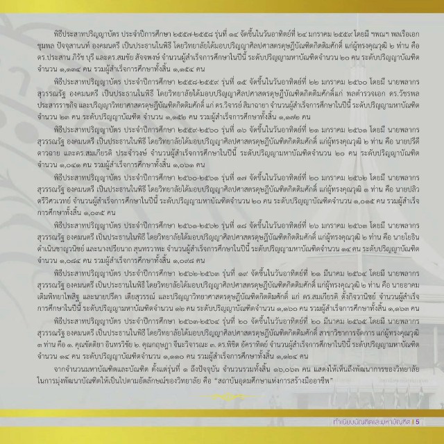 ประสารราชกิจ และปริญญาวิทยาศาสตรดุษ ีบัณฑิตกิตติมศักดิ์ แก่ ดร วิจารย์ สิมาฉายา จำานวนผู้สำาเร็จการศึกษาในป นี้ ระดับปริญญามหาบัณฑิต