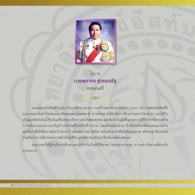 คุณภาพออกไปทำาประโยชน์แก่สังคมและประเทศชาติ ท่านทั้งหลายได้สำาเร็จการศึกษาในสาขาวิชาต่าง และได้รับ