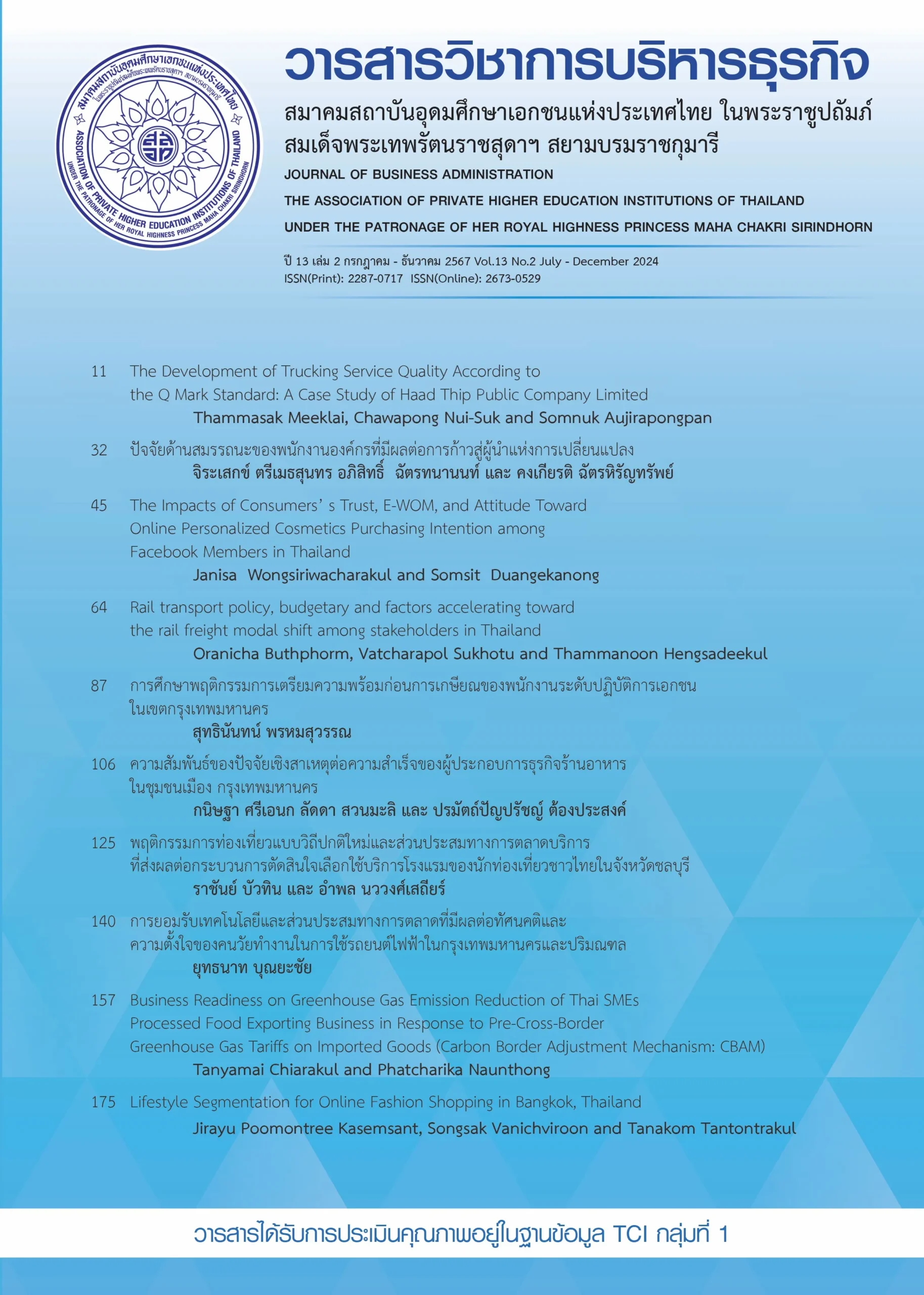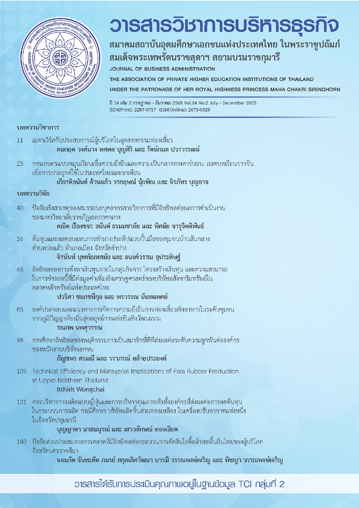 The Journal of Business Administration, The Association of Private Higher Education Institutions of Thailand started to issue its first publication in 2012 and was transformed to the online publication in 2013.