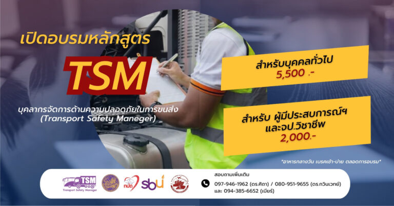 หลักสูตรบุคลากรจัดการด้านความปลอดภัยในงานขนส่ง Transport Safety Manager (TSM)