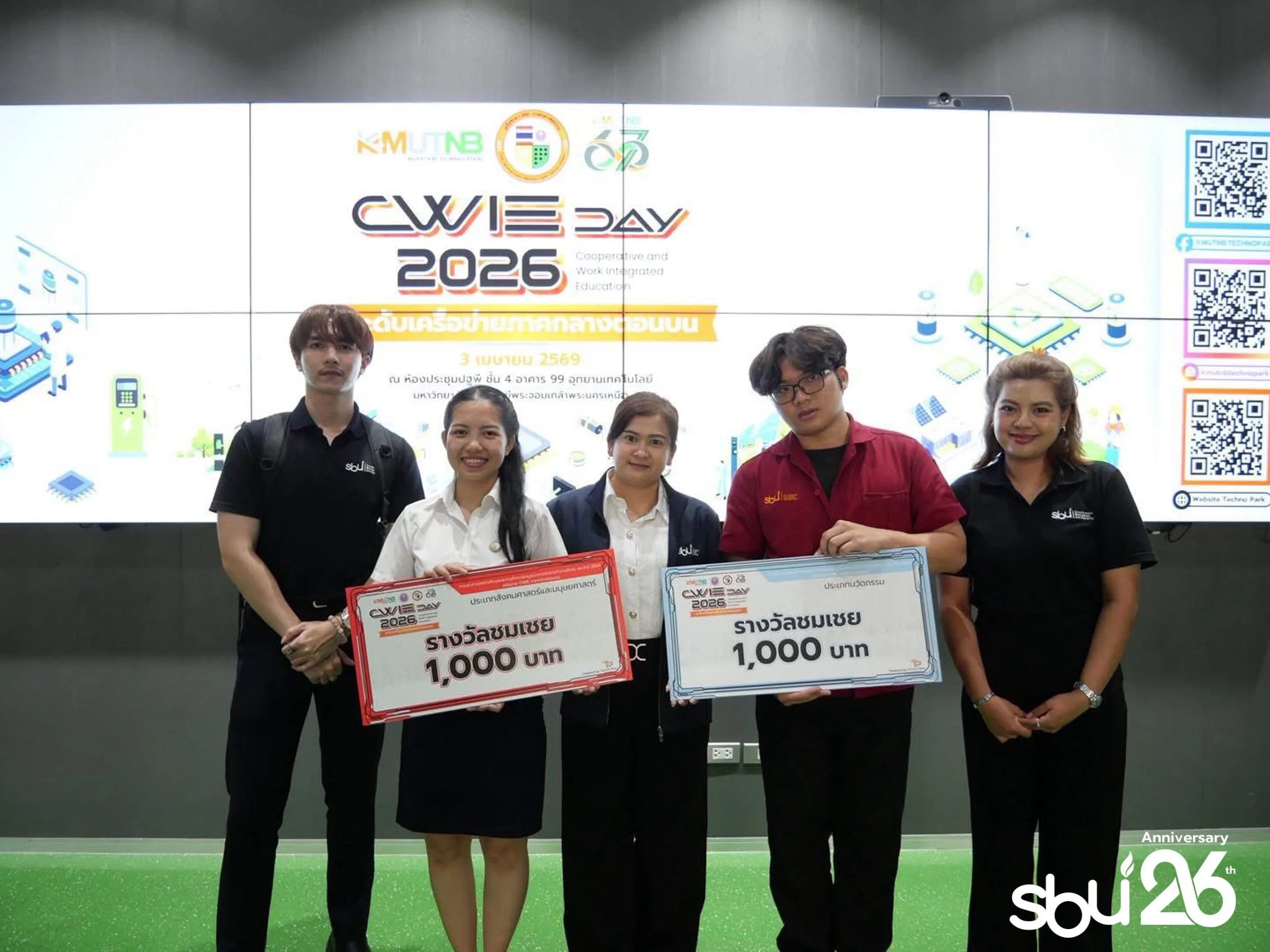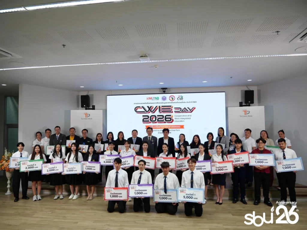 ภาพบรรยากาศแห่งความภาคภูมิใจ กิจกรรมการประกวดสหกิจศึกษาและการศึกษาเชิงบูรณาการกับการทำงานดีเด่น ระดับเครือข่ายอุดมศึกษา เพื่อการพัฒนาสหกิจศึกษาภาคกลางตอนบน ประจำปี 2569 เมื่อวันที่ 3 เมษายน 2569