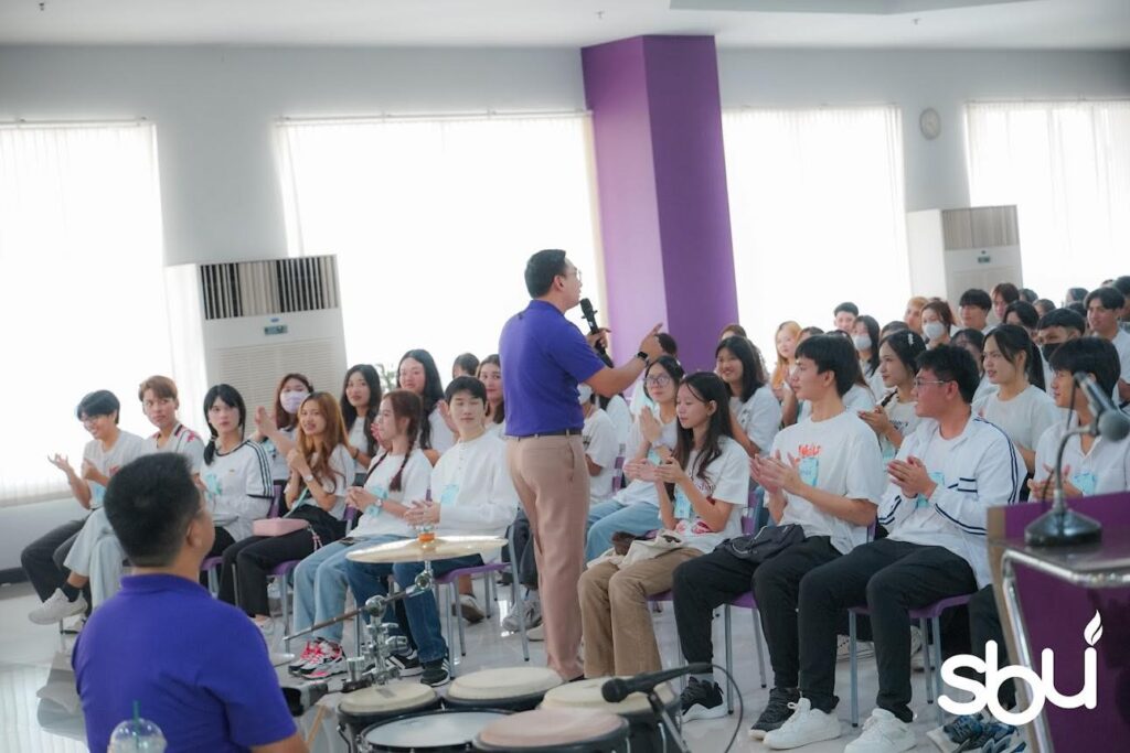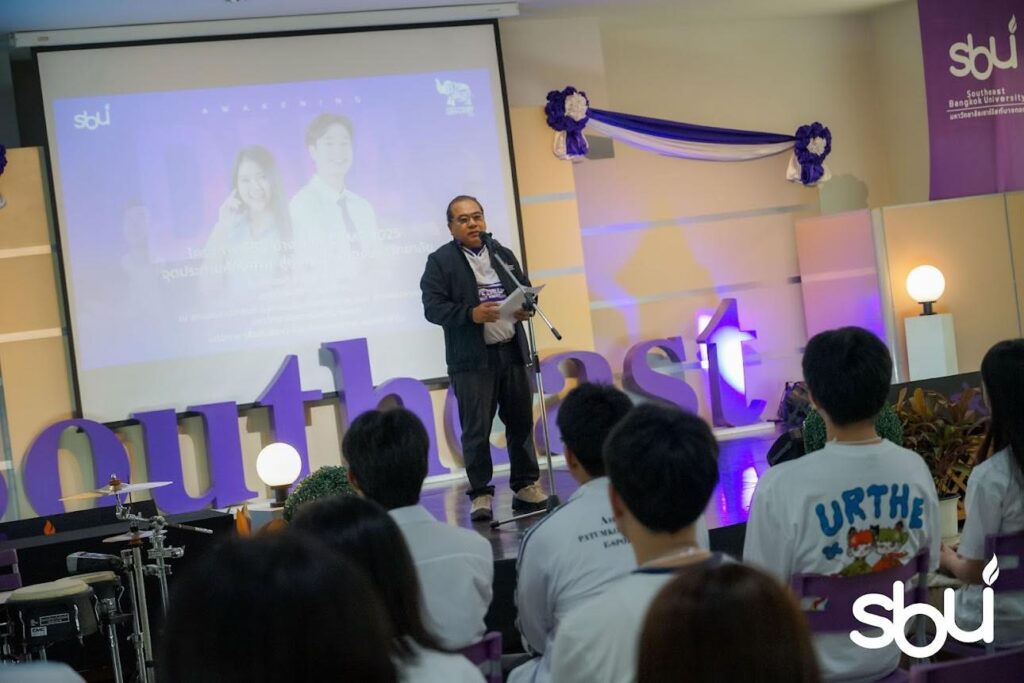 เปิดเวทีต้อนรับอย่างอบอุ่นโดย ดร.สมศักดิ์ รุ่งเรือง อธิการบดี มหาวิทยาลัยเซาธ์อีสท์บางกอก ที่จะมาร่วมส่งพลังใจให้ทุกคนเริ่มต้นชีวิตมหา’ลัยอย่างมั่นใจ