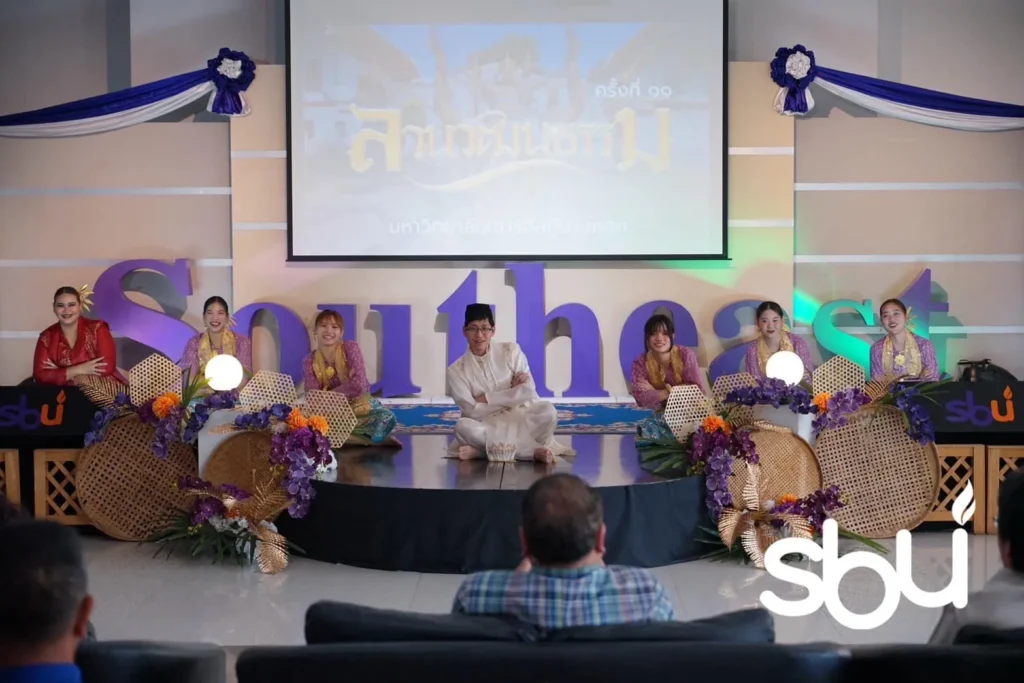 เมื่อวันอาทิตย์ที่ 9 กุมภาพันธ์ 2568 รองอธิการบดีฝ่ายพัฒนานักศึกษา ดร.ภูษิตย์ วงษ์เล็ก และ กลุ่มงานพัฒนานักศึกษาและศิลปวัฒนธรรม ร่วมกับ คณะบัญชีและวิทยาการจัดการ คณะนิติศาสตร์ คณะศิลปศาสตร์ คณะเทคโนโลยีดิจิทัลและนวัตกรรม และคณะโลจิสติกส์และเทคโนโลยีการบิน มหาวิทยาลัยเซาธ์อีสท์บางกอก จัดกิจกรรม “ลานวัฒนธรรม” ครั้งที่ 11 ภายใต้รูปแบบ “เสน่ห์ไทย” โดยดร.สมศักดิ์ รุ่งเรือง อธิการบดี เป็นประธานในพิธีกล่าวเปิดงาน บรรยากาศในงานแสดงบูธศิลปวัฒนธรรมจาก 4 ภาคของทุกคณะ ไม่ว่าจะเป็น ภาคเหนือ, ภาคกลาง,ภาคอีสาน และภาคใต้ พร้อมกิจกรรมไฮไลท์ของงาน “ประกวดส้มตำลีลาสุดมันส์” จาก คณะเทคโนโลยีดิจิทัลและนวัตกรรม ณ บริเวณลานอเนกประสงค์ ชั้น 1 อาคารเฉลิมพระเกียรติ7 รอบฯ มหาวิทยาลัยเซาธ์อีสท์บางกอก