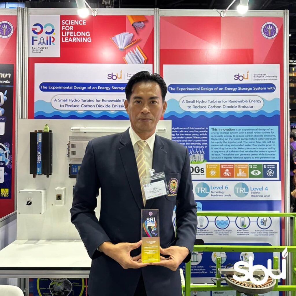 มหาวิทยาลัยเซาธ์อีสท์บางกอก ได้รับโล่ SRI ENGAGEMENT NETWORK ในงาน อว.แฟร์ : SCI POWER FOR FUTURE THAILAND โดย ผู้ช่วยศาสตราจารย์ อภิชิต เสมศรี อาจารย์ประจำสาขาวิชาเทคโนโลยีวิศวกรรมอุตสาหการ คณะเทคโนโลยีดิจิทัลและนวัตกรรม เป็นตัวแทนรับโล่ โดย มหาวิทยาลัยฯ แสดงผลงาน ทางด้านเทคโนโลยีแห่งอนาคต เพื่อตอบโจทย์ SDGs : A Small Hydro Turbine for Renewable Energy to Reduce Carbon Dioxide Emissions และส่งเสริมการใช้ประโยชน์ทางวิทยาศาสตร์วิจัยและนวัตกรรม ณ ศูนย์ประชุมแห่งชาติสิริกิติ์ (QSNCC)