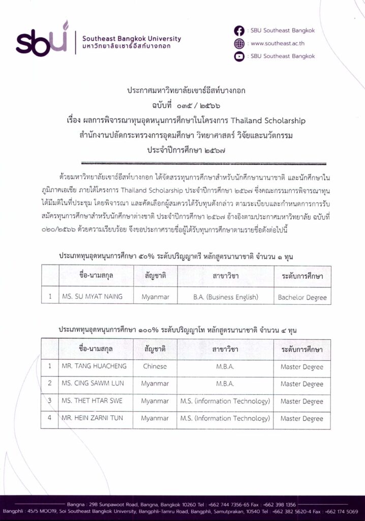 Congratulations to the one who get our International Scholarship 2024 at Southeast Bangkok University.